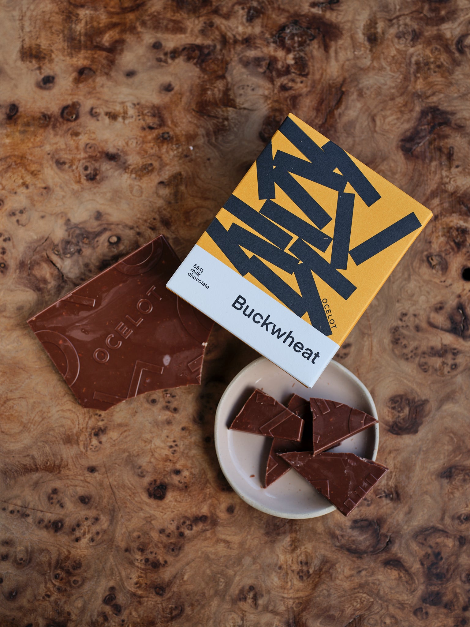 Ocelot’s milk chocolate and buckwheat bar is a treat for any chocoholic. Made with rare Amelonado cocoa beans, it’s rich, smooth and creamy. Toasted buckwheat adds a hint of nuttiness and a delicious crunchy contrast.
