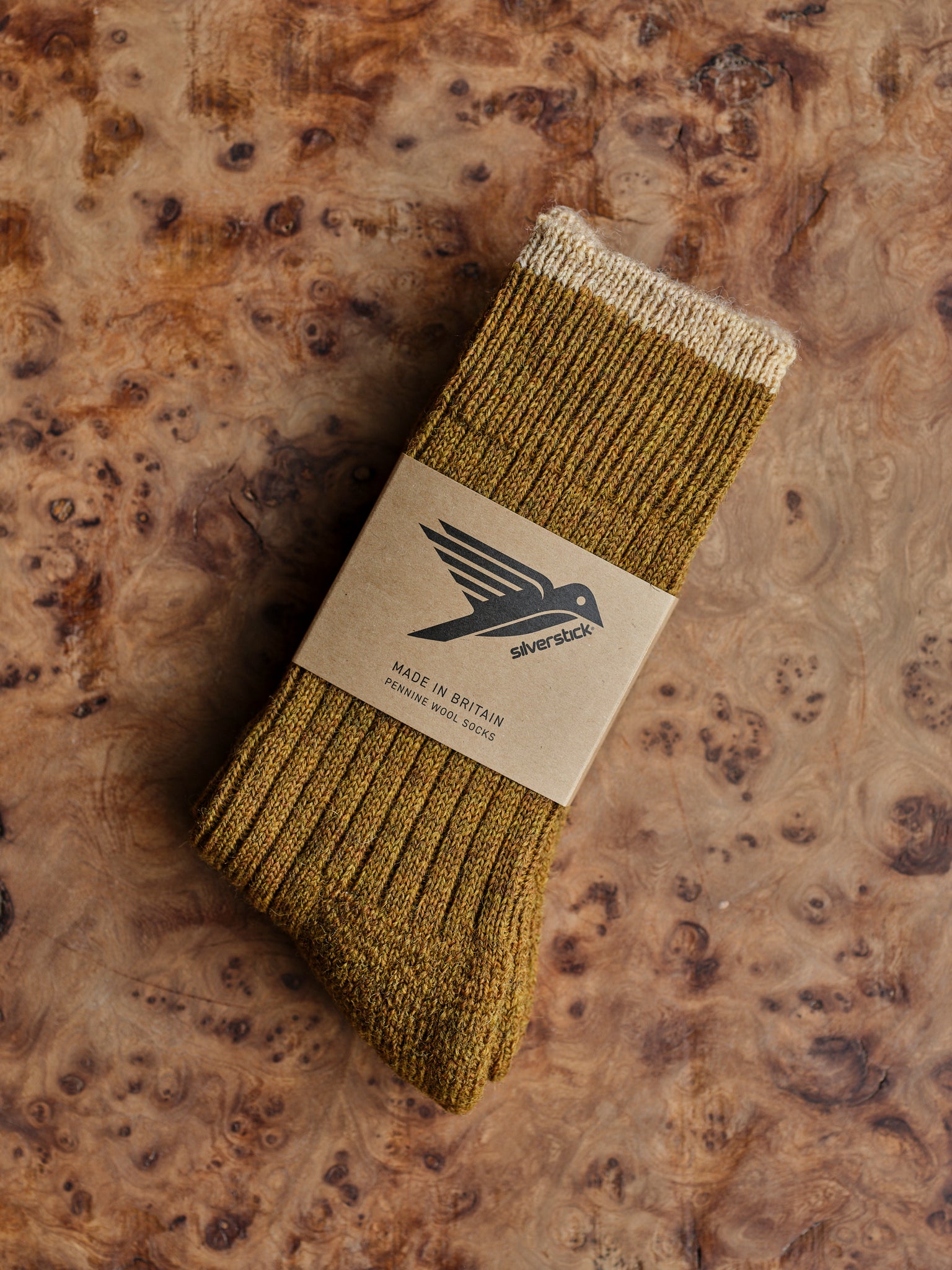 Made in Britain, these soft wool socks have a ribbed leg and a comfortable cushioned sole. The natural wool comes from sheep grazing on the Pennines and the colours are inspired by the hills throughout the seasons.